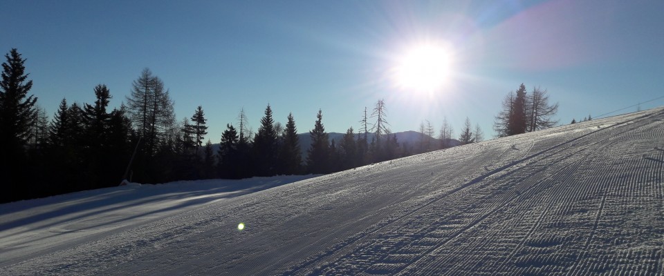 Bei Schneemangel gibt es auch die Möglichkeit über die bestens präparierte Piste aufzusteigen. Das Tagestiket für Tourengeher kostet € 5,00.